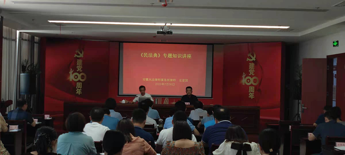 講座邀請集團(tuán)公司法律顧問、安徽從法律師事務(wù)所律師史愛國來公司為全體干部員工進(jìn)行民法典宣講。