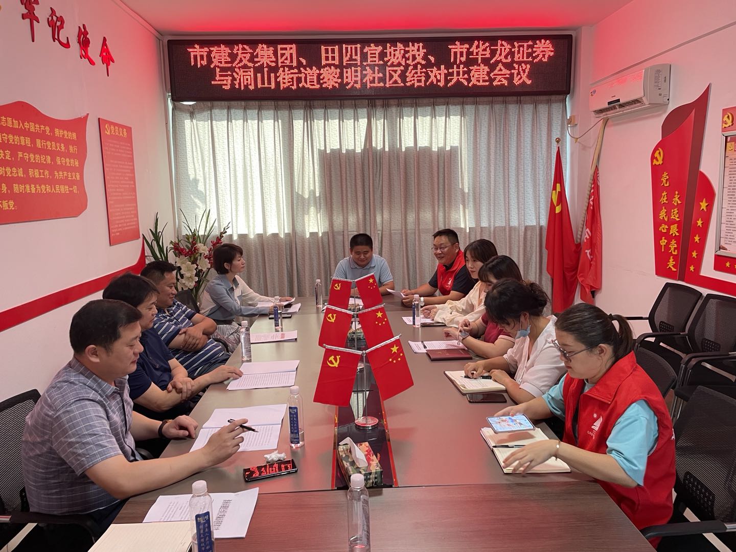 為認(rèn)真貫徹落實(shí)市委市政府關(guān)于創(chuàng)建全國文明城市工作部署,持續(xù)加大與結(jié)對社區(qū)結(jié)對共建力度,9月10日下午,建發(fā)集團(tuán)與田區(qū)四宜建投集團(tuán)、華龍證券、田區(qū)洞山街道黎明社區(qū)召開聯(lián)席會議,就結(jié)對共建的工作重點(diǎn)、共建方案等開展調(diào)研座談。建發(fā)集團(tuán)黨委副書記高友祿、四宜建投集團(tuán)董事長余宏偉、華龍證券淮南朝陽西路證券營業(yè)部總經(jīng)理姚登輝、洞山街道黨工委副書記胡傳松、黎明社區(qū)黨總支書記張賢及有關(guān)人員參加會議。