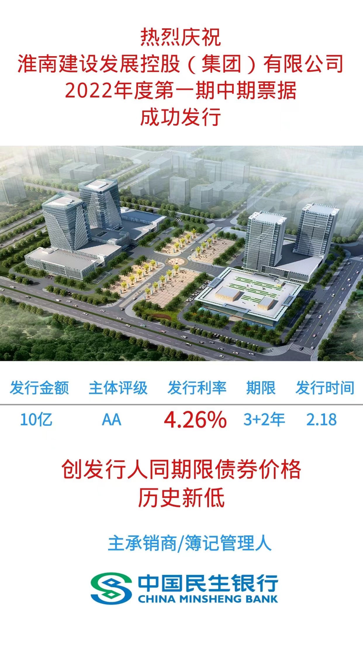 2月17日,建發(fā)集團成功簿記發(fā)行2022年度首單中期票據(jù),債券簡稱:22淮南建發(fā)MTN001、發(fā)行規(guī)模10億元、票面利率4.26%、認購倍數(shù)達2.4倍。