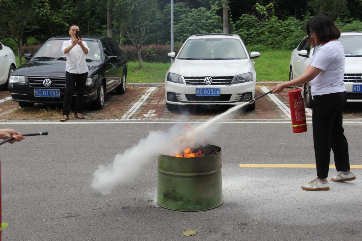 演練開(kāi)始由消防工程師為大家講解辦公樓內(nèi)各種滅火設(shè)備的功能及使用方法,以及如何做好防護(hù)避免受傷的注意事項(xiàng);現(xiàn)場(chǎng)演練了如何打開(kāi)消火栓、拋開(kāi)水袋、對(duì)接水槍口、打開(kāi)閥門(mén)等消防器械重要部位的操作和動(dòng)作要領(lǐng)。然后組織員工迅速?gòu)牟叫刑莅踩行虺冯x,在逃生黃金5分鐘內(nèi)到達(dá)安全地帶。最后在辦公大樓西廣場(chǎng)現(xiàn)場(chǎng)示范了滅火器的正確使用方法,并由參加演練的員工進(jìn)行了實(shí)操體驗(yàn)。
